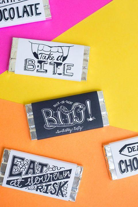 روی یک پاکت کوچک مخصوص گیفت، طرح گربه، جادوگر، خفاش، اسکلت، کدو تنبل یا هر چیزی که به نظرتان ترسناک میآید را چاپ، یا با استفاده از رنگ های اکرلیک نقاشی کنید و درونشان را با شکلات های تیره یا پاستیلهای ترسناک پر کنید و به مهمانها هدیه دهید.