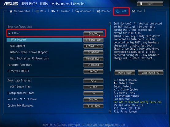 و اما در محصولات جدید غیرفعال کردن Fast Boot ضروری است. ایسوس: