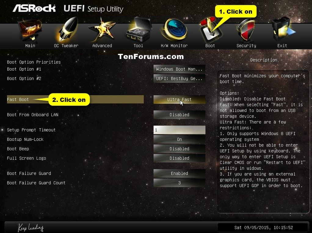 توجه کنید که اگر در تنظیمات BIOS یا UEFI سیستم شما قابلیتی به اسم Windows Fast Startup یا Fast Boot فعال باشد، کلید F8 کار نخواهد کرد و ویندوز به سرعت بوت میشود.