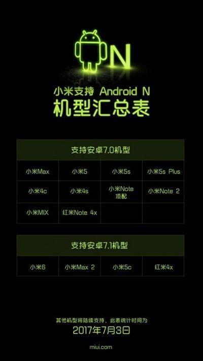 شیائومی در مورد بروزرسانی به اندروید ۷.۰ قولهایی داده بود که اکنون با توجه به تصویر فوق به نظر میرسد که برخی گوشیها به اندروید ۷.۰ و برخی دیگر به ۷.۱ بروز میشوند.