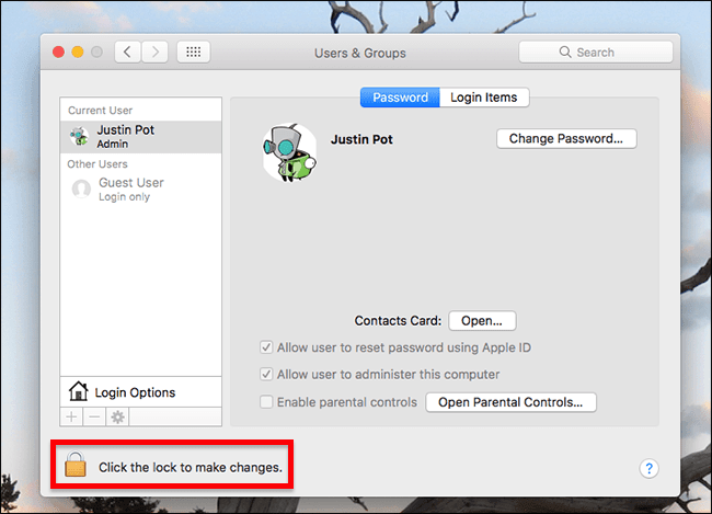 System Prefrenced > Users & Groups
