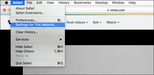 برای فعال کردن پخش ویدیو در برخی وبسایتها ابتدا وبسایت موردنظر را باز کنید و سپس روی منوی سافاری کلیک کنید و گزینهی Settings را انتخاب کنید.