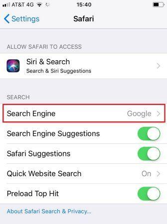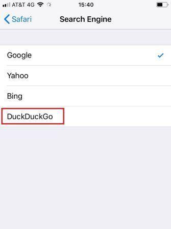 درصورتی که فقط از موتور جستجوی گوگل بر روی مرورگر خود استفاده میکنید، هیچ شانسی بهبود امنیت مرورگر وجود ندارد. به یاد داشته باشید، شما مالک تلفن همراهی هستید که از نظر امنیتی بهترین است. اما واقعیت این است که گوگل و بینگ هر دو در زمینه ردیابی سابقه جستجوها شناخته شده و موفق هستند. بنابراین شما باید موتور جستجوی سافاری خود را به نحوی انتخاب کنید که به امنیت حریم خصوصیتان کمک کند. یکی از بهترین و شناخته شدهترین گزینهها در این میان DuckDuckGo است. برای تغییر موتور جستجو مسیر Setting > Safari > Search Engine را دنبال کنید و سپس از لیست موجود DuckDuckGo را انتخاب کنید.