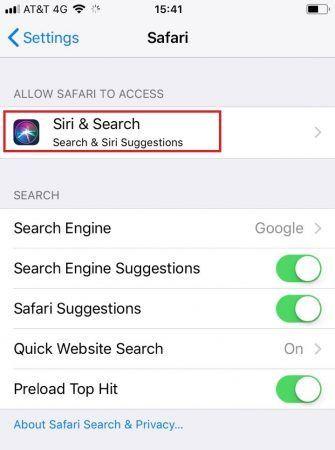 Siri & Search را غیرفعال کنید